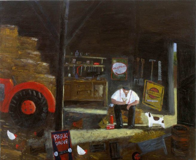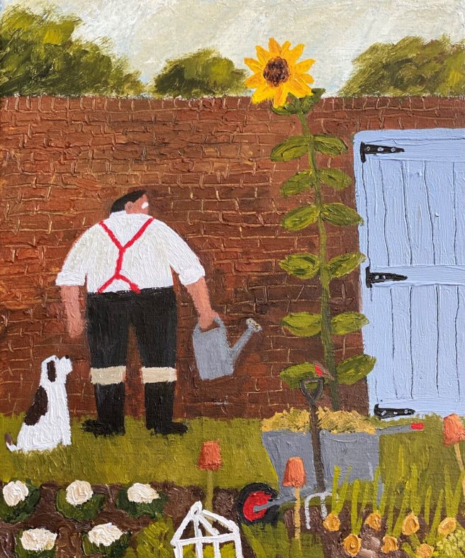 You may remember my featuring his work a couple of years ago, when I mentioned that he usually includes a short poem on the back of his paintings. His ‘old man with dog’ pictures have made his work instantly recognizable and highly accessible.