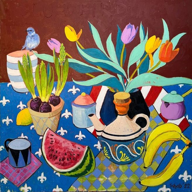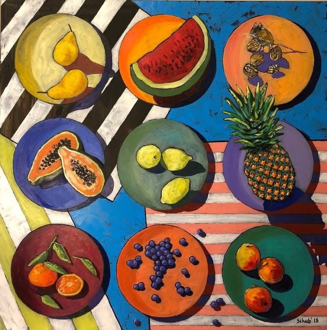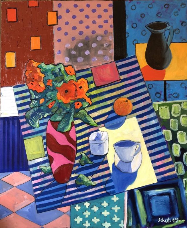Enjoy this short video montage showing some of Schab’s landscapes, abstracts, portraits, and other still lifes.