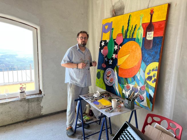 Though he had been drawing since childhood, he only began painting at an easel in 1999. He works in oil on canvas, and with dry pastels on paper. He describes his style as bordering on Fauvism and Expressionism.