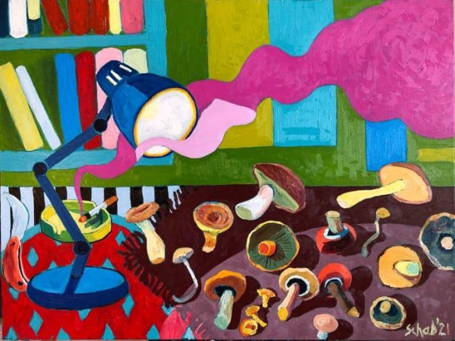 Though Schab lives and works in Bristol, England, he’s originally from Rybnik, Poland (b. 1973). He studied law, earning a degree in Political Science from the University of Silesia in Katowice. He also graduated with a degree in Painting from the Jan Dtugosz University in Częstochowa, and attended painting and drawing classes at the Academy of Fine Arts in Krakow for two years.