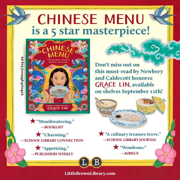 4. New Mouthwatering Middle Grade Book Alert! Look what’s coming out a week from today on September 12: Chinese Menu: The History, Myths, and Legends Behind Your Favorite Foods, by Grace Lin (Little, Brown BFYR, 2023)!!