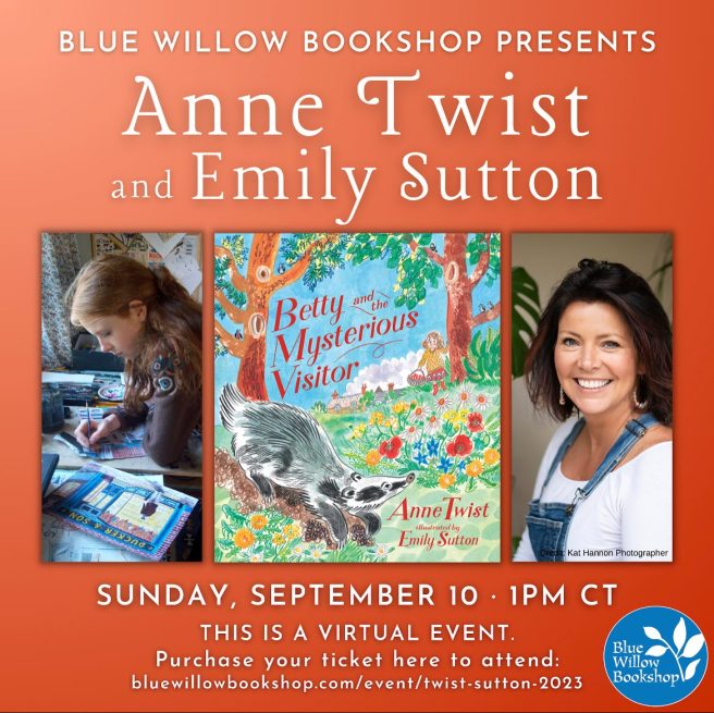Anne and Emily are doing a virtual story time and Q&A event via the Blue Willow Bookshop in Houston, Texas, this coming Sunday, September 10, 2023 at 1 p.m. CDT/ 2 p.m. ET!! You can purchase a ticket for this Zoom webinar at Eventbright. Your ticket price includes a copy of the book with a bookplate signed by Anne.