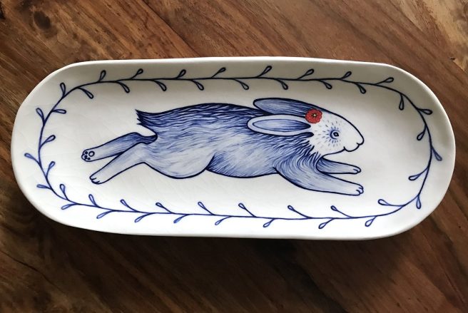 All pieces are microwave and dishwasher safe. Love the sweet, delicate designs! Follow Anna on Instagram for process videos and to keep abreast of new items. FYI, you can also purchase prints, cards, and books at her online shop.