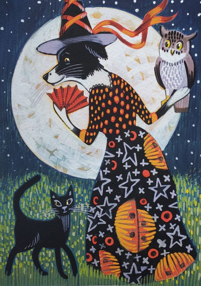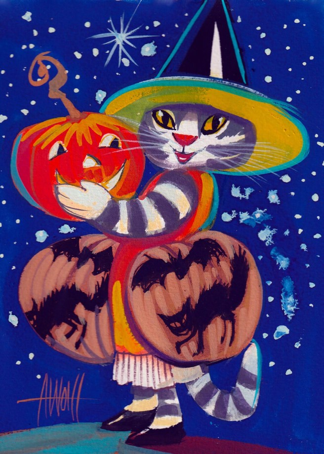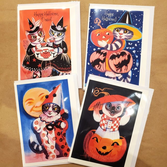 Since it’s October, enjoy a few of her Halloween-y prints and greeting cards, all for sale.