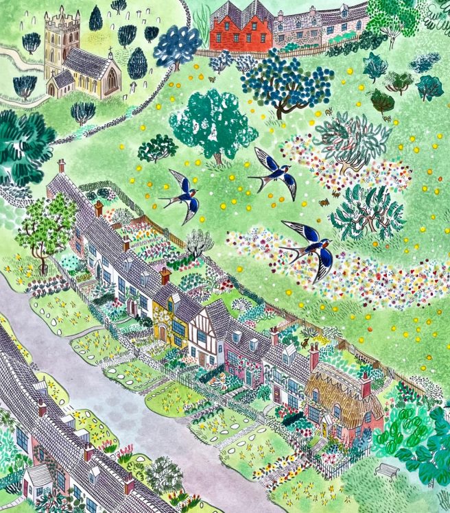 Jama, Emily Sutton’s painterly drawings do stir my mind to remembering our ambles in lvillages thru in The Cotswolds. I return from the UK always in awe of residents’ garden skills/passion.