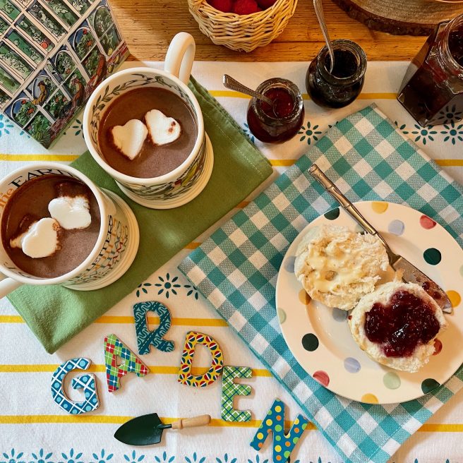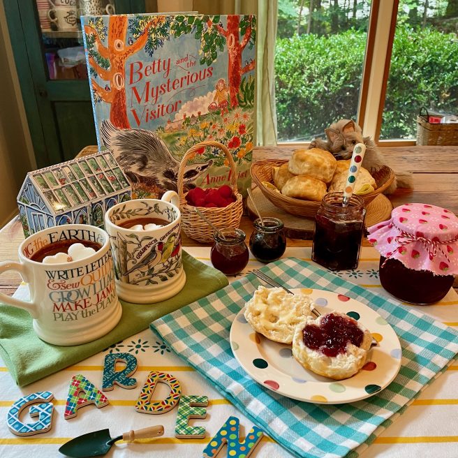 The book looks gorgeous, and I love the story. I am not a gardener, but I do enjoy seeing what other people grow. Biscuits and jam! YUM!