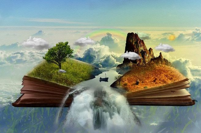 So much wonder here, and I love that “Floating Book Island with Waterfall” and hummingbird, thanks!