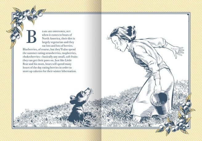 While you’re feasting your eyes on this yummy treat, I must mention how much I love the Blueberries for Sal endpapers. It’s easily my favorite endpapers of all time. McCloskey’s dark blue line drawings for the entire book earned him a Caldecott Honor Medal in 1949, and it’s easy to see why.