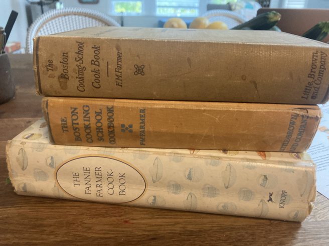 I owned several old Fannie Farmer cookbooks (the book has been revised many times and is still in print today), but had never thought much about the author. (After all, Betty Crocker is a marketing ploy, completely made up!) Then about five years ago, my daughter dressed up as Fannie for a fourth grade project on inventors (Fannie is often thought of as having invented standard measurements–teaspoons and cups). My interest was instantly piqued, and we went from there!