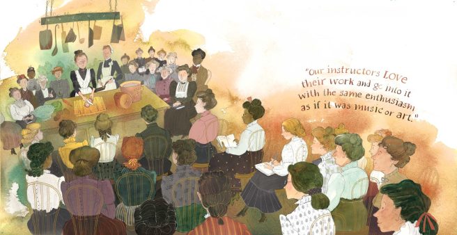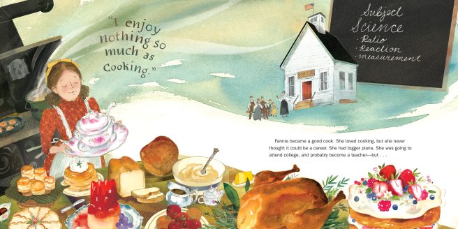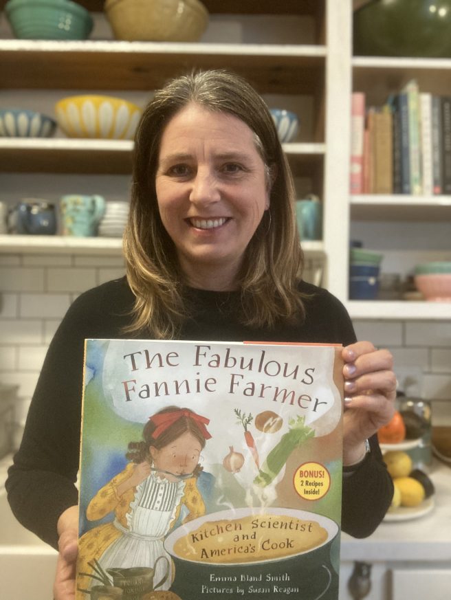 Today we’re happy to welcome San Francisco author Emma Bland Smith to discuss her latest picture book, The Fabulous Fannie Farmer: Kitchen Scientist and America’s Cook (Calkins Creek, 2024). Charmingly illustrated by Susan Reagan, this engaging, well researched account of Fannie’s professional life as an author, culinary expert and teacher officially hits shelves today and will inspire you to whip up one of Fannie’s recipes. 🙂