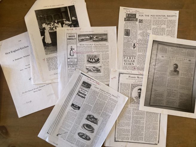 Fannie wrote a weekly cooking column for a magazine called Woman’s Home Companion. Generally Fannie was known for her scientific approach to cooking, but in these columns she allowed the more playful part of her personality to come through. She would explain how to make imaginative desserts and occasionally would even mention her childhood–which was gold to me, since otherwise there are very few records of her early life.