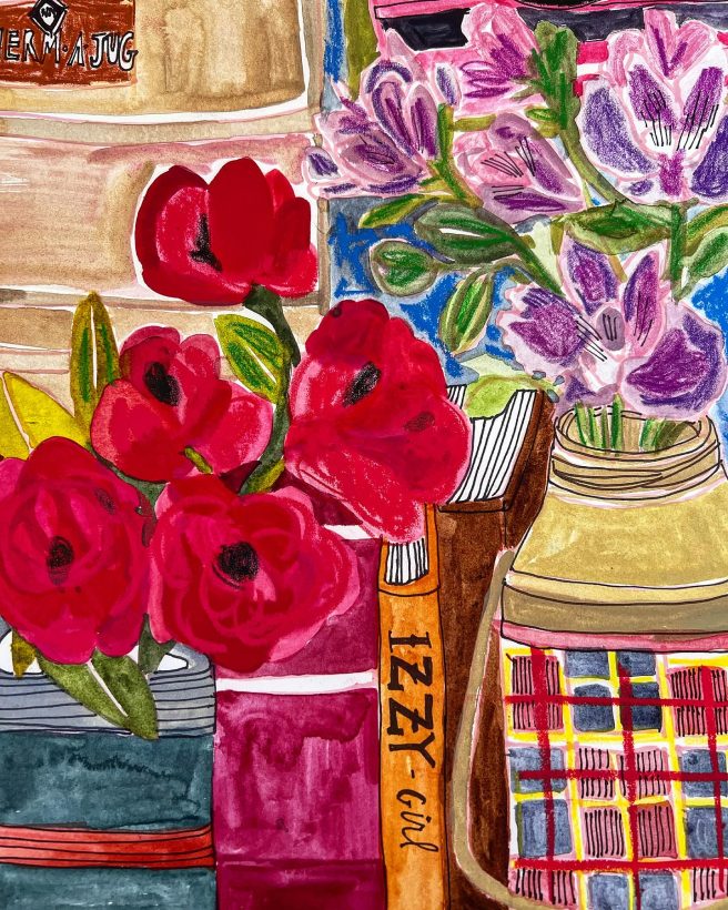 And if that isn’t enough, she’s currently hosting a still life club, where every Friday (sometimes Saturday), she’ll post a still life scene, composed of objects from her antique collection, something she’s observed, or something from her space, to serve as prompts for others to create their own drawings, paintings, collages, etc.