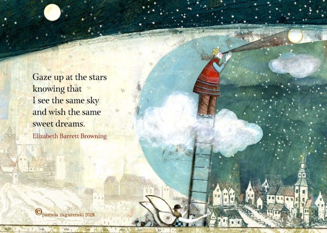 In addition to publishing award winning picture books, Pamela owns Sacredbee, a greeting card company that features her stunning paintings on all occasion cards, prints, postcards, stickers and totes.