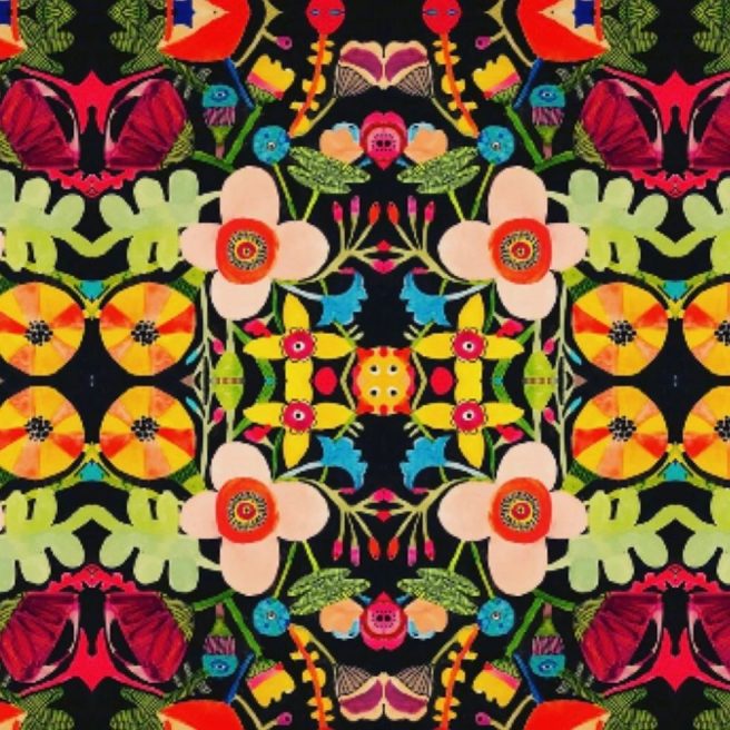 A self-proclaimed “paper scrap hoarder,” Nullsie’s still life paintings reflect her love of flowers, nature, and antiques (she used to sell them in NY). She also loves pattern/surface design: “Sometimes I think I see the world through a secret looking glass that reveals to me fantastic color wheels of wonder & repeating patterns.”