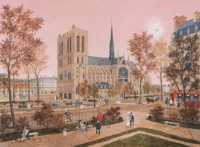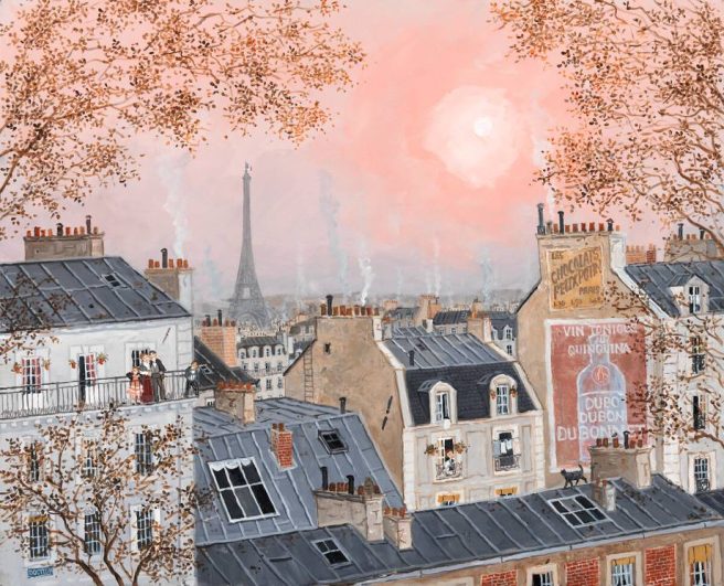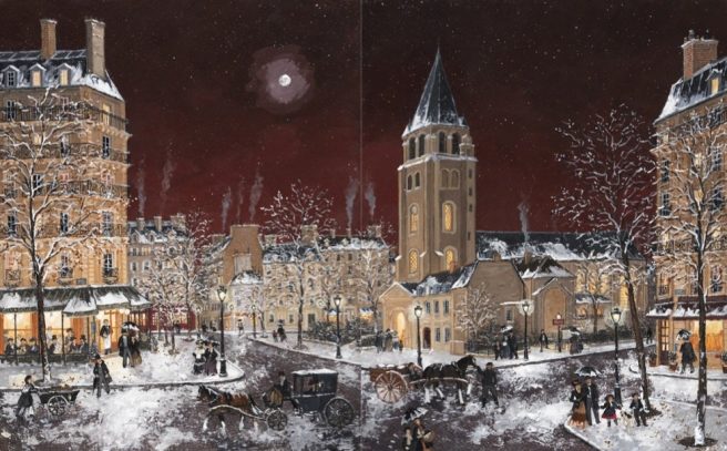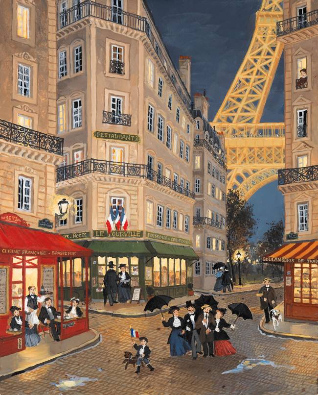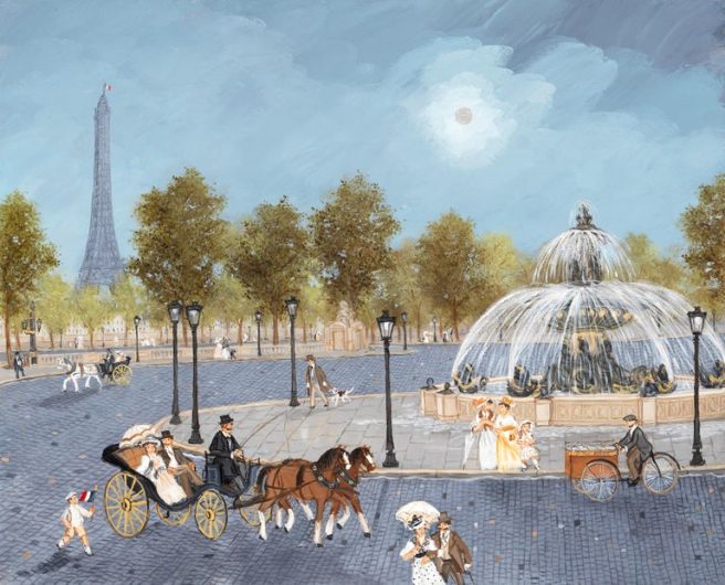 Displaying a mastery of light and color reminiscent of the French Impressionists, Delacroix’s depictions of iconic city landmarks are set during France’s golden age, La Belle Époque. Dating from the late 19th century to the outbreak of WWI in 1914, this “beautiful era” was characterized by peace, optimism, economic prosperity, political stability and colonial expansion, in addition to technological, scientific, and cultural innovations.
