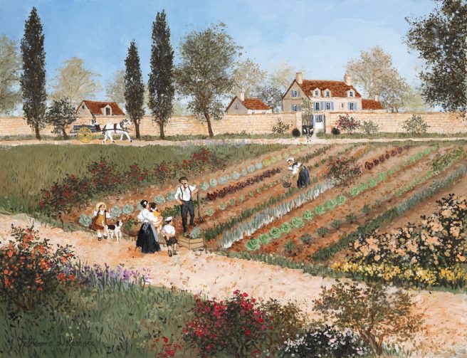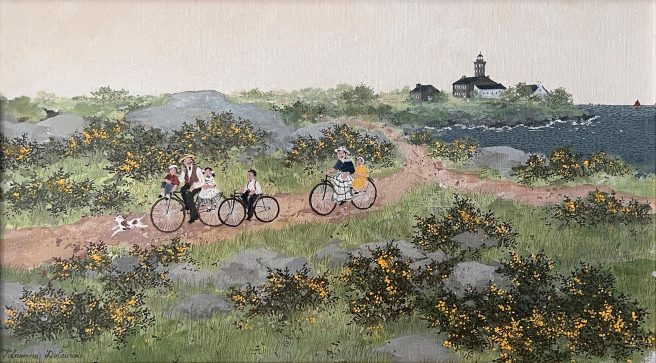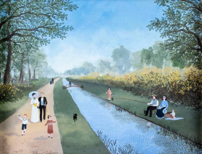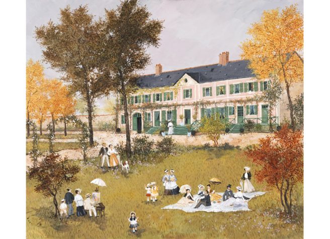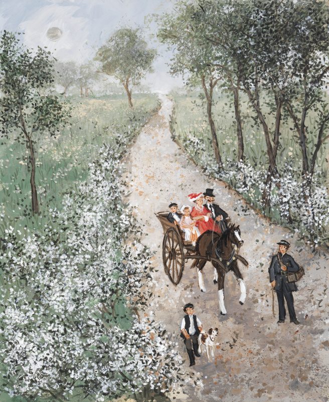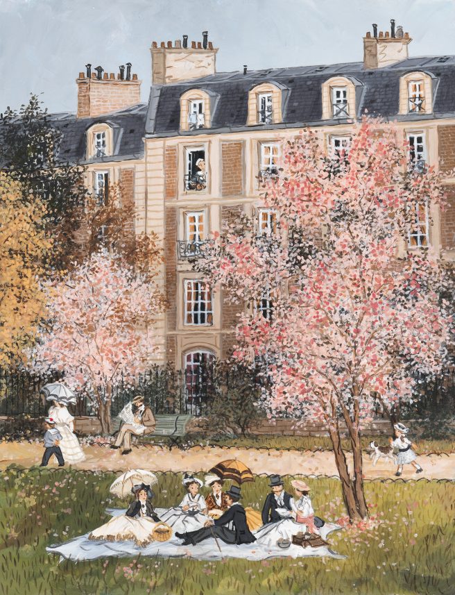 I appreciate the serenity, joy, and playfulness of her pictures — seeing people strolling together, riding bicycles, picnicking, going for buggy rides, boating or chatting with friends is welcome respite from today’s too busy, often chaotic world. Her paintings also have a timeless quality about them.