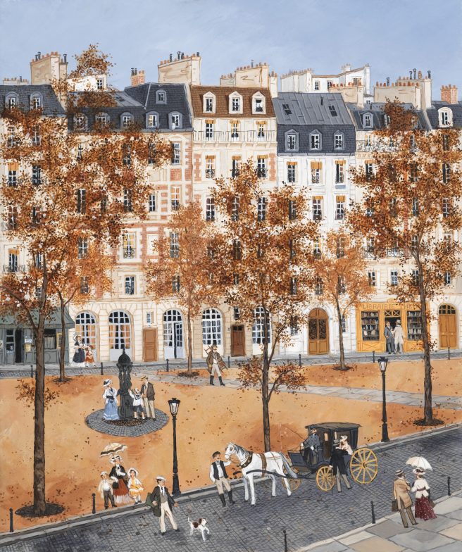 Most notably, the arts flourished and numerous masterpieces of literature, music, theatre, and visual art gained extensive recognition. In her poetic, nostalgic paintings, Fabienne celebrates a time in history when life was sweet, the pace was slower, and people found joy in simple pleasures.