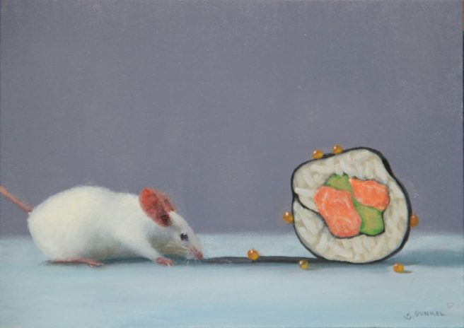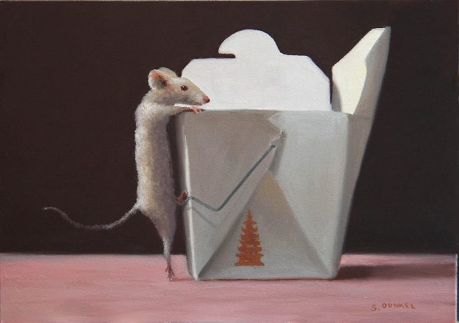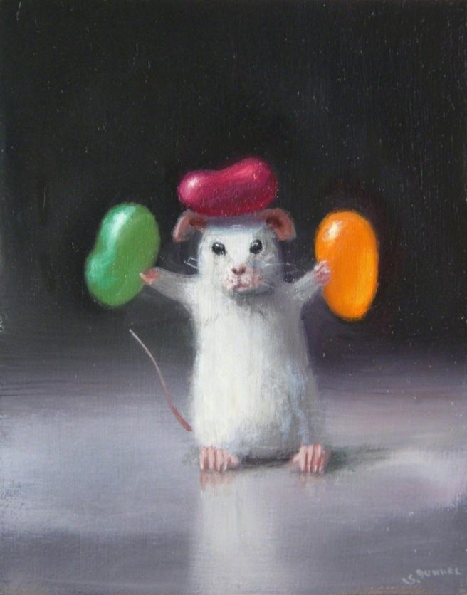 He submitted the Chuckie painting with others he was doing for a gallery in Provincetown, MA. It sold immediately and the gallery asked for more. So began Dunkel’s mouse series.