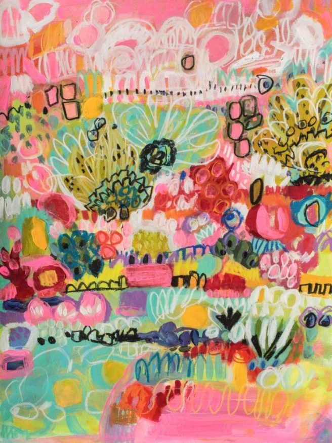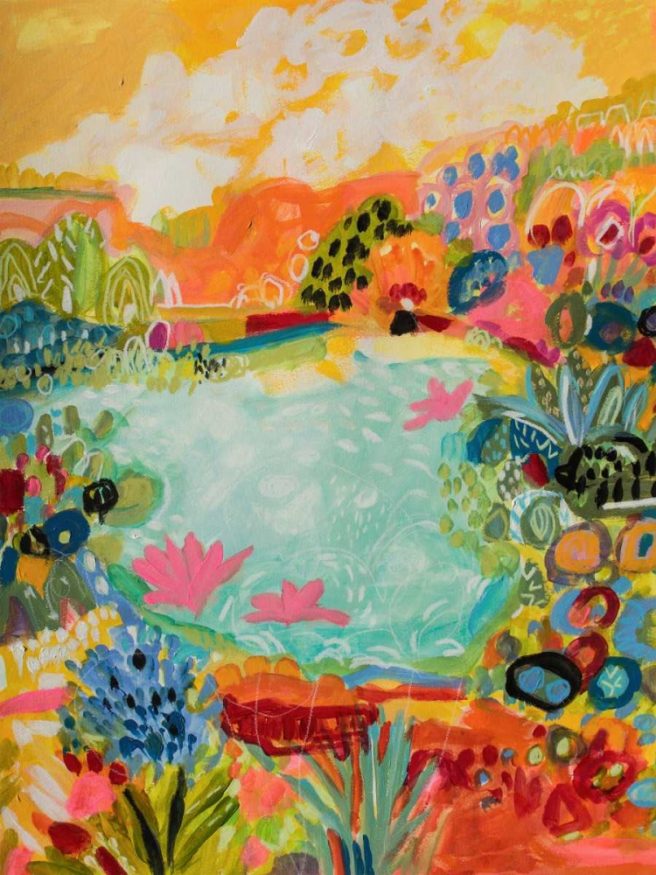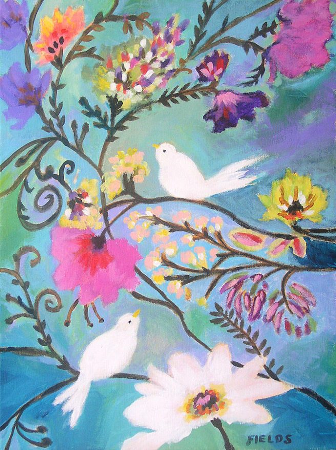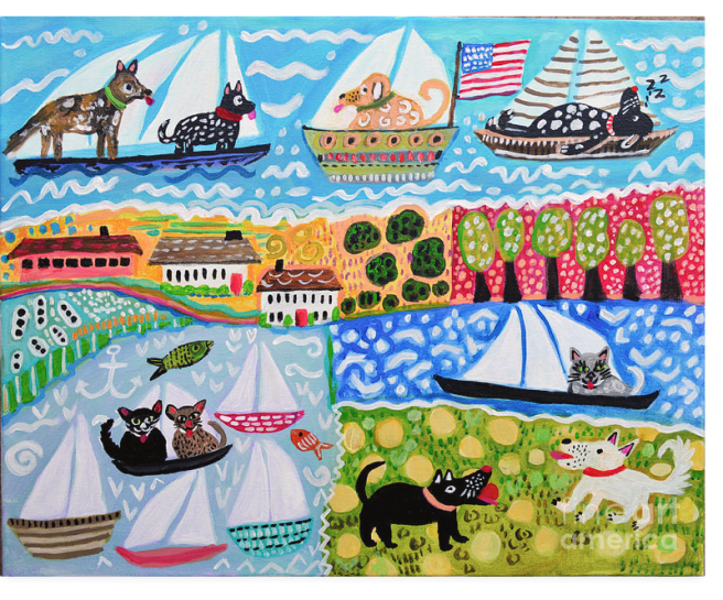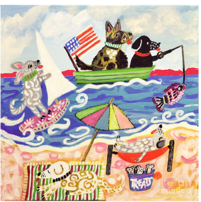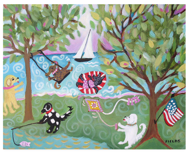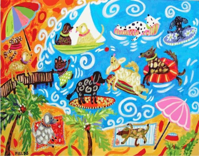 Ruff ruff! The sun’s out and the water’s fine. Let’s dip into some of Karen Fields’s happy-making paintings.