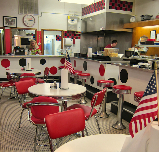 The name Unlucky in Love for the diner came to me instantly. I love diners and on back road travels, my husband and I seek mom-and-pop eating places where the first course of that day’s special might be cole slaw. Diners tend to serve modest homestyle cooking. We may pretend we love kale salad with pine nuts but we really crave fried canned salmon cakes and cornbread. I document those diner experiences by taking notes and taking pictures. All of which came in handy.
