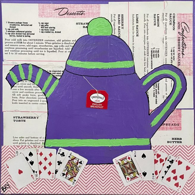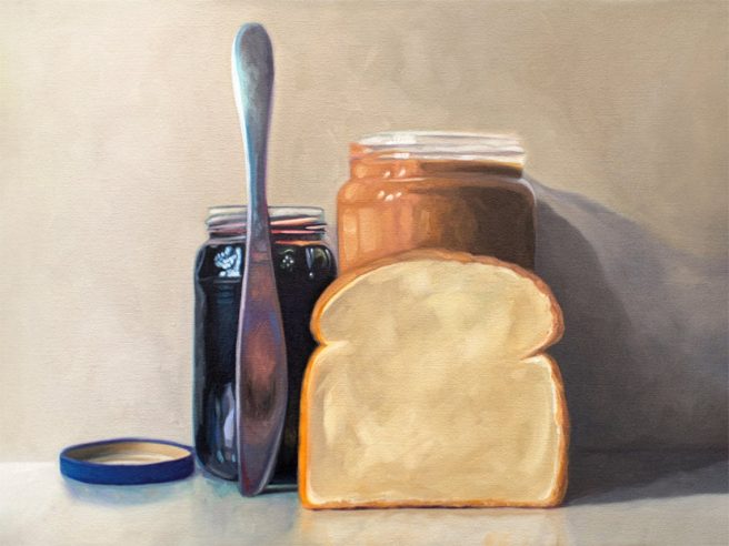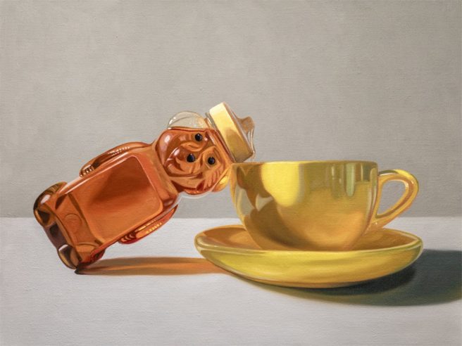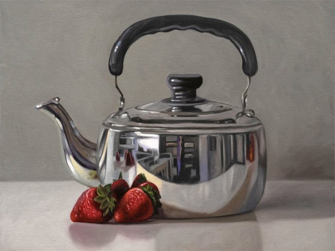 I’m always in awe of artists who paint reflective surfaces well — like this silver tea kettle, for example. Purty cool!