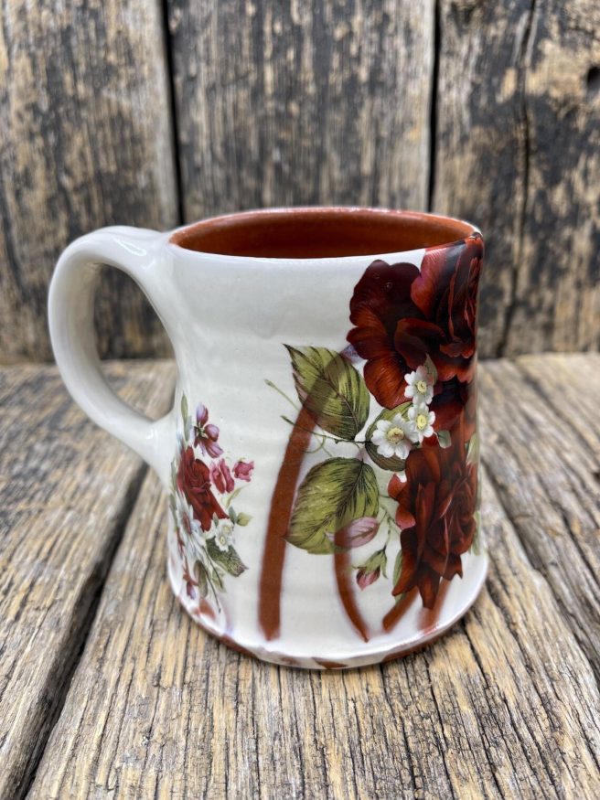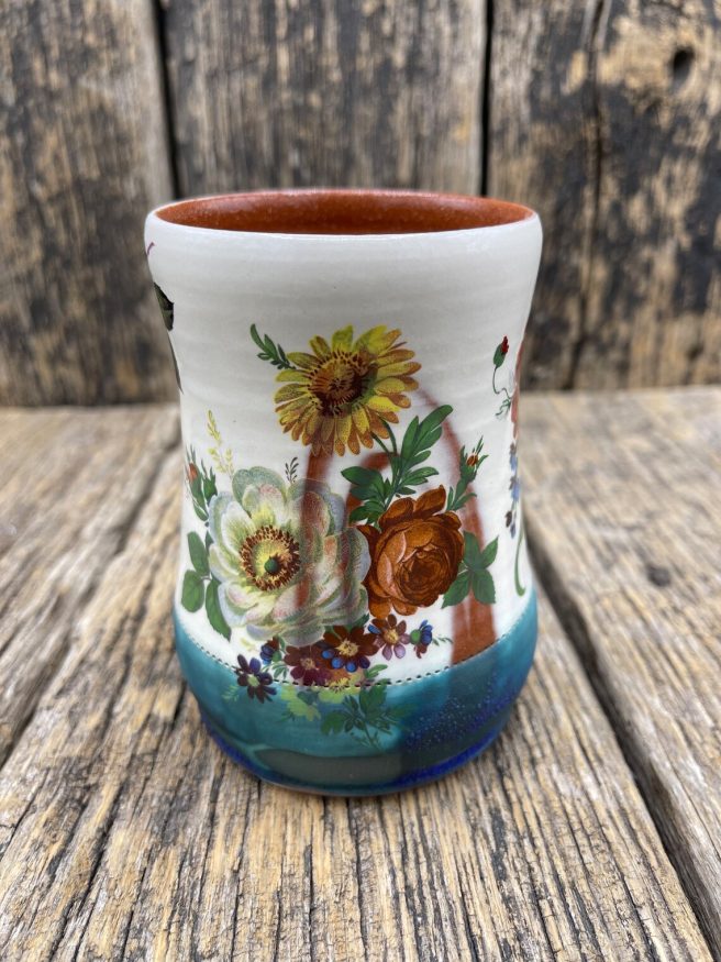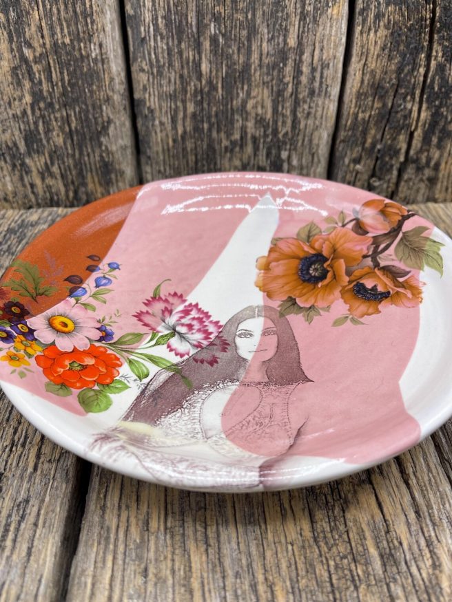 She creates decorative and functional mugs, cups, and plates with a vintage, pop culture vibe. She works primarily with earthenware — making hand-built and wheel-thrown objects using color, pattern, floral, and figurative imagery to evoke a feeling of nostalgia.