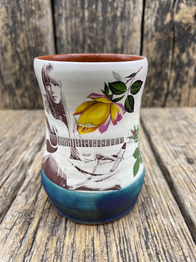 This Joni Mitchell wine/tea cup is especially lovely: