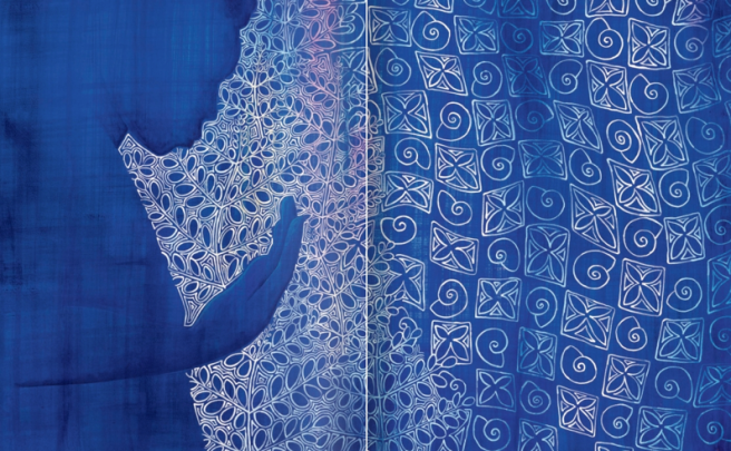 Brew-Hammond begins her captivating narrative by citing how elusive and mysterious blue actually is. It’s “all around us,” in the sky and sea. Yet we can’t touch the sky and when we try to cup the sea, its blueness disappears. We may crush iris petals for a brilliant shade of blue, but when we add water, the color fades away.