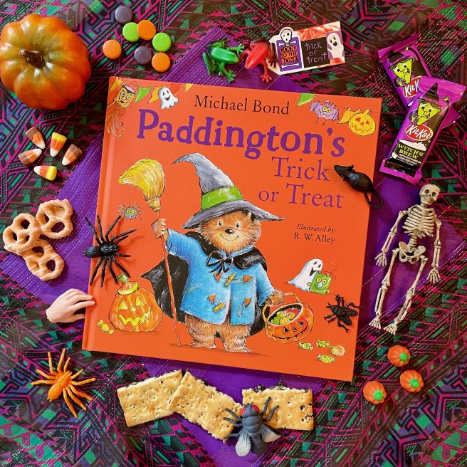 In Paddington’s Trick or Treat by Michael Bond and R.W. Alley (HarperCollins Children’s Books, 2024), our beloved bear from darkest Peru is super excited about his very first Halloween party. There’s just one problem: an uninvited guest is spoiling all the fun. Can Paddington trick him into leaving?