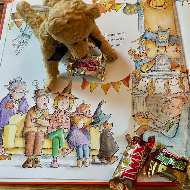 The Browns then enjoyed the rest of the party with Mrs Bird’s delicious pumpkin soup, Garibaldis (of course), and several games. Paddington decided to send most of his chocolates to Aunt Lucy, then headed up to his room with his lantern. It had been such a nice Halloween that he wanted to savor every last moment of it!