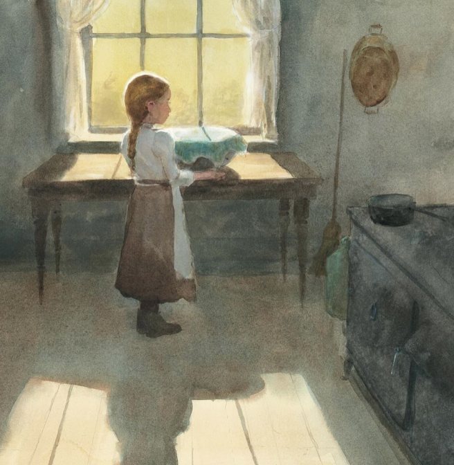 While waiting for the dough to rise, Little Pickle asks Nana to tell him more about their rolls. She says the rolls saw her family through hard times, like during the Great Depression, or when their house was quarantined because of the polio epidemic, or more recently, when people had to isolate because of COVID. No matter what, “still there was bread,” thanks to the chickens and cows on the farm, or having milk and eggs delivered. Sometimes, “warm, fresh-baked food feels like a hug when you really need one.”