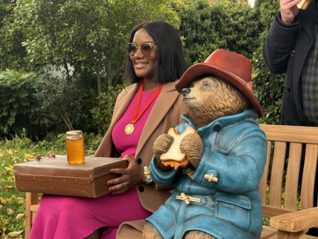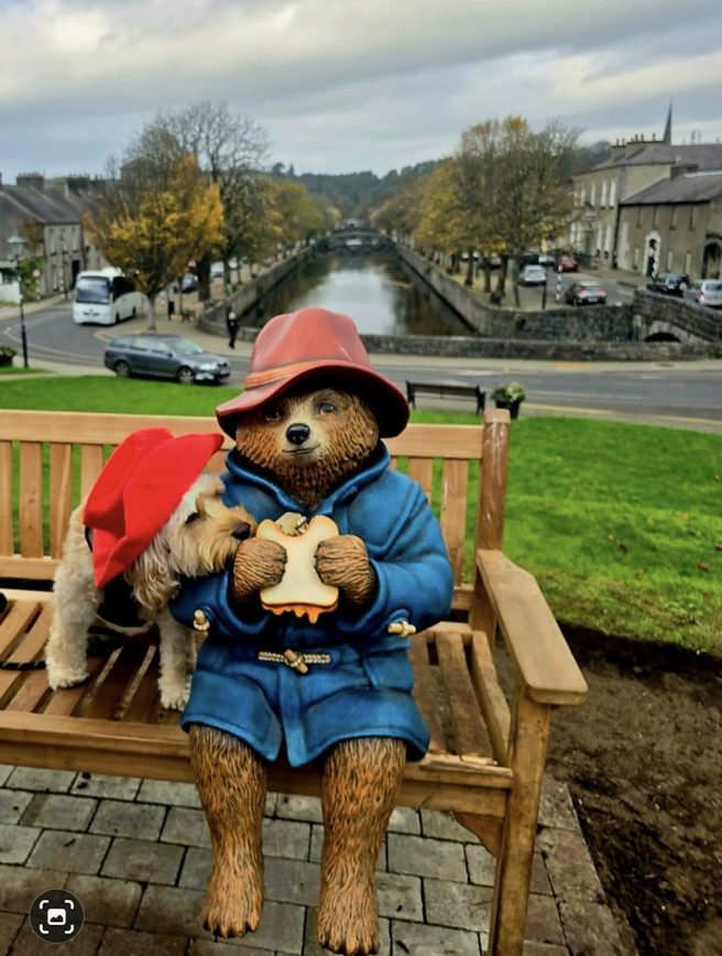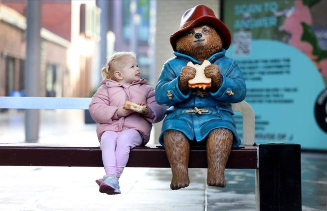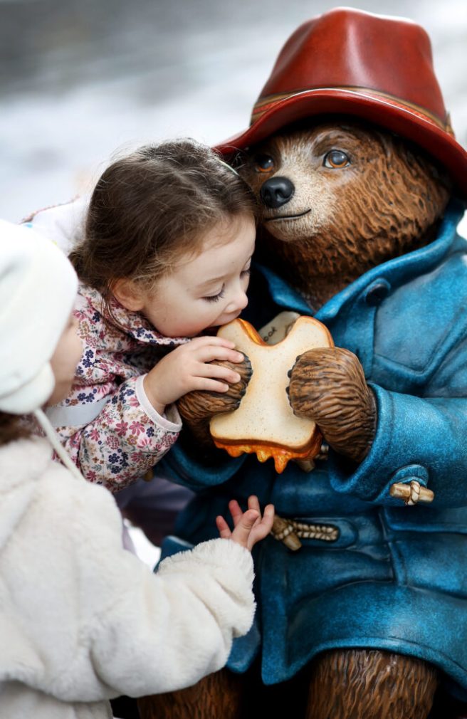 But ahead of the UK release last month, he was out and about spreading joy via the Paddington Visits trail. Twenty-three Paddington statues appeared across the UK and Ireland in various towns and villages, in places like Liverpool, Birmingham, Edinburgh, Manchester, Reading, York, Paddington Station (London), and Newbury (Michael Bond’s birthplace). Paddington’s comfortably sitting on a bench eating a marmalade sandwich (naturally).