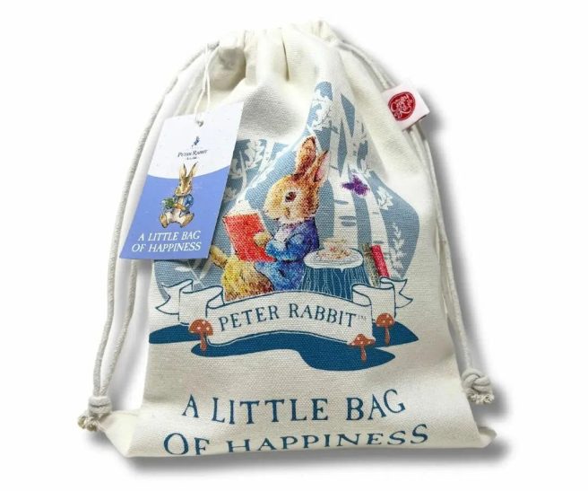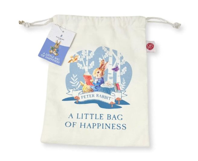 Finally, you’ll want something to store your supplies. How about a Peter Rabbit “Little Bag of Happiness” Drawstring Bag?