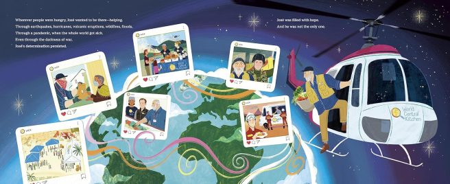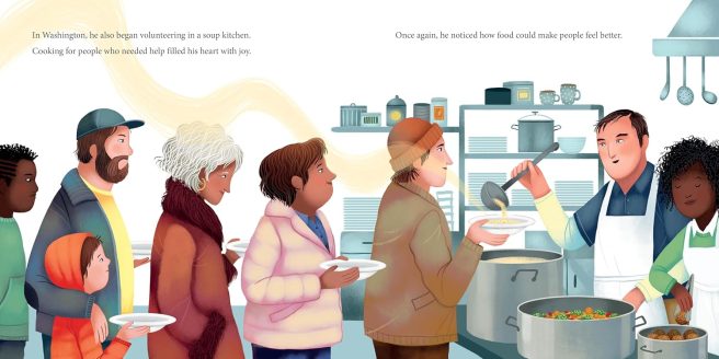 Both books, A Plate of Hope and José Feeds the World trace José’s life from his childhood interest in cooking, to attending cooking school in Barcelona, to becoming an assistant chef at El Bulli, opening a tapas restaurant called Jaleo in Washington, D.C. (where he also volunteered at the DC Central Kitchen), to the 2010 Haiti earthquake, which motivated him to create World Central Kitchen.