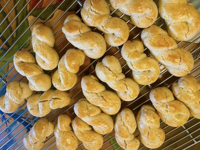 The Greek koulouria cookie my Yaya (beloved maternal grandmother) taught me. It goes especially well with coffee or tea. Dunked too, of course. I made these for the Tea With the Emilys launch party I had for this book!