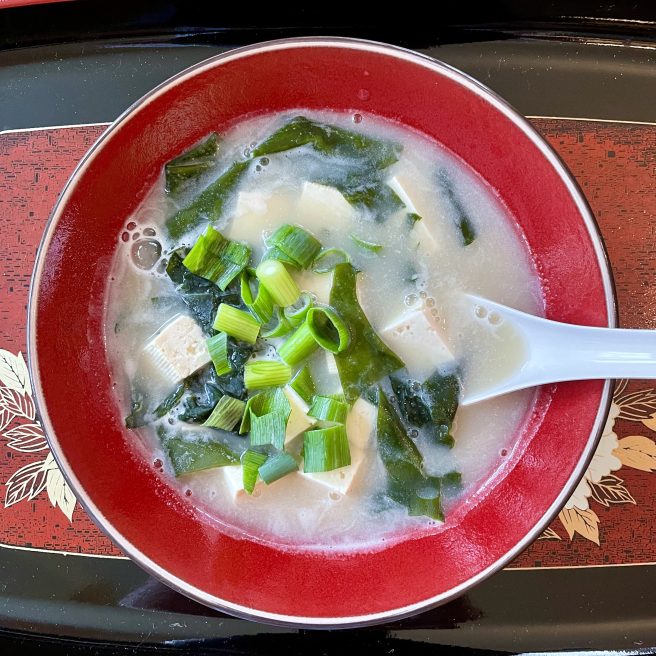 A bowl of warm, restorative miso soup is the perfect prelude to a delicious Japanese meal, priming the palate for the goodness to come. I enjoy nibbling on the little cubes of tofu and wakame strips while stirring the broth with my chopsticks, then savoring each sip (no matter the restaurant, it’s usually just the right temperature too!). Ahhhh . . . so good!