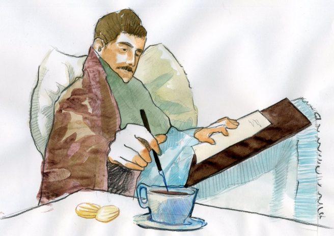 It must be fun to paint Proust — some describe his mustache as thin, but in some photos, it’s not that at all. In any case, he put madeleines on the culinary map! Enjoy your summer too.