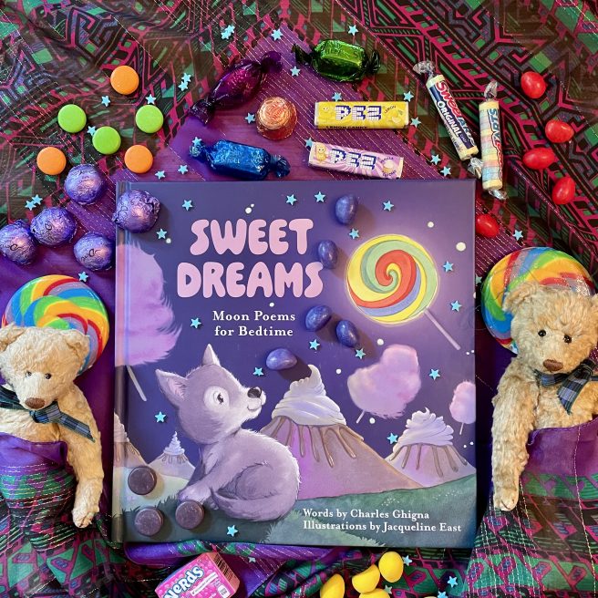 In Sweet Dreams: Moon Poems for Bedtime (Schiffer Kids, 2025), beloved Alabama poet Charles Ghigna serves up a delightful platter of lunar treats illustrated by Jacqueline East. The fourteen short poems in the collection invite young readers to explore the moon’s many guises, whether playful, evocative, majestic or enchanting.