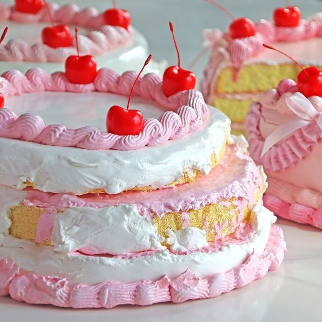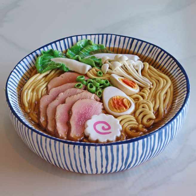 We were impressed by how she made everything by hand herself, creating unique, drool-worthy pieces. Now, 10 years later, she’s still a one-woman operation and continues to wow everyone with new designs that defy belief. Whether croissants, a stack of pancakes, a loaf of bread, layer cakes, s’mores, fish ‘n chips, cherry pies, burritos, tacos, TV dinners, fruit tarts, hot cross buns, on and on — all of her hand-painted clay-foam accessories look sooooo realistic and continue to turn heads.
