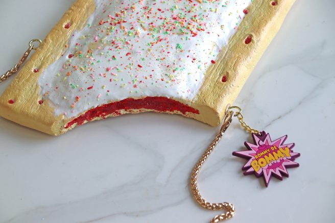 Also love her nostalgic favorites (PopTarts, Pineapple Upside-down Cake, Mac ‘n Cheese), seasonal offerings (gingerbread boys, Yule Log, Peeps), cartoon characters (Tweety, SpongeBob Popsicles). Basically, just dream about anything you like to eat — sweet or savory — chances are good Rommy has already made it into a handbag. 🙂