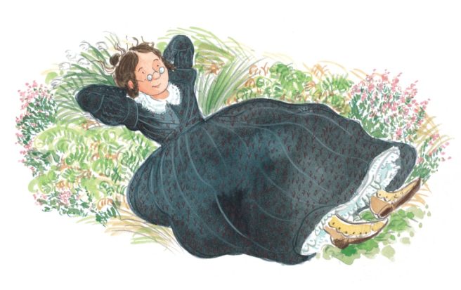 Can’t say I blame her: when I visited the Southern Coast of Maine ten years ago, I was finally able to try wild Maine blueberries for the very first time. So good! The lowbush berries like Sal ate are smaller and sweeter than the highbush variety widely available in supermarkets around the country. If I had gone blueberry picking with Sal and her mom, there wouldn’t be any berries in my pail at all. 🙂