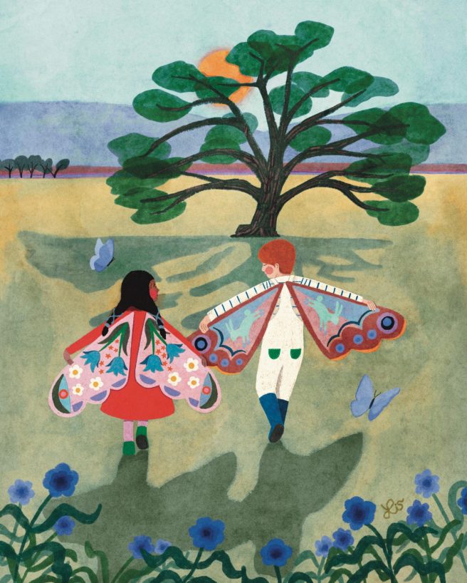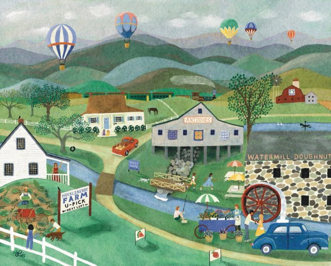 Today’s charming winter scenes were created by Wisconsin-based artist-illustrator Elisabeth (“Lis”) Dorrian. You may remember we featured her work back in June, before she moved to the Midwest from Maryland. Lis is self taught, has been drawing since childhood, and works in gouache, acrylics, and digitally for her folk art style pieces.