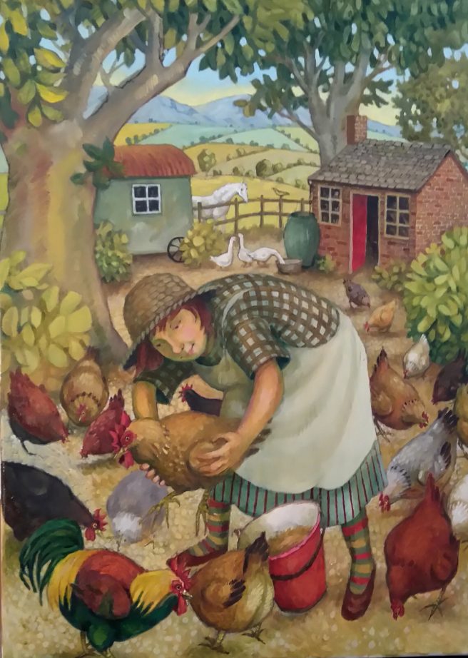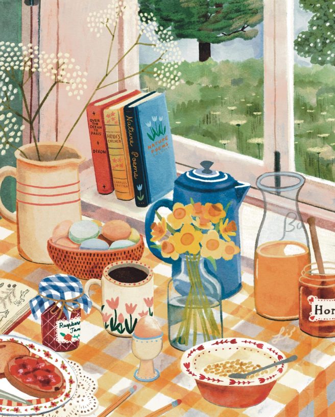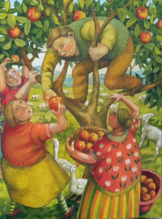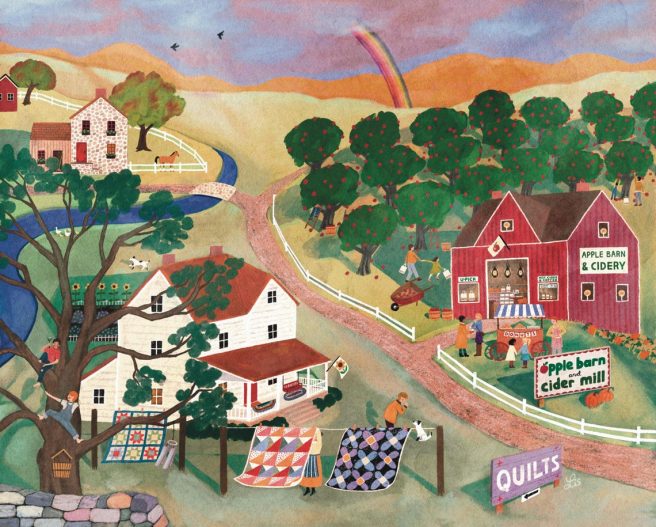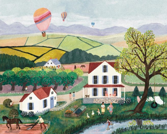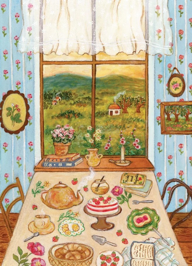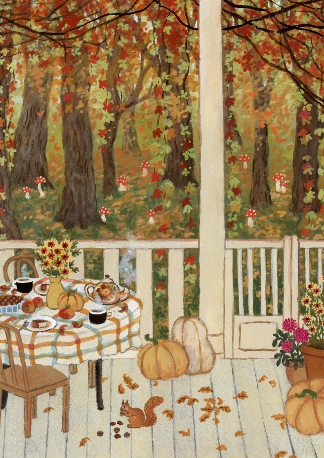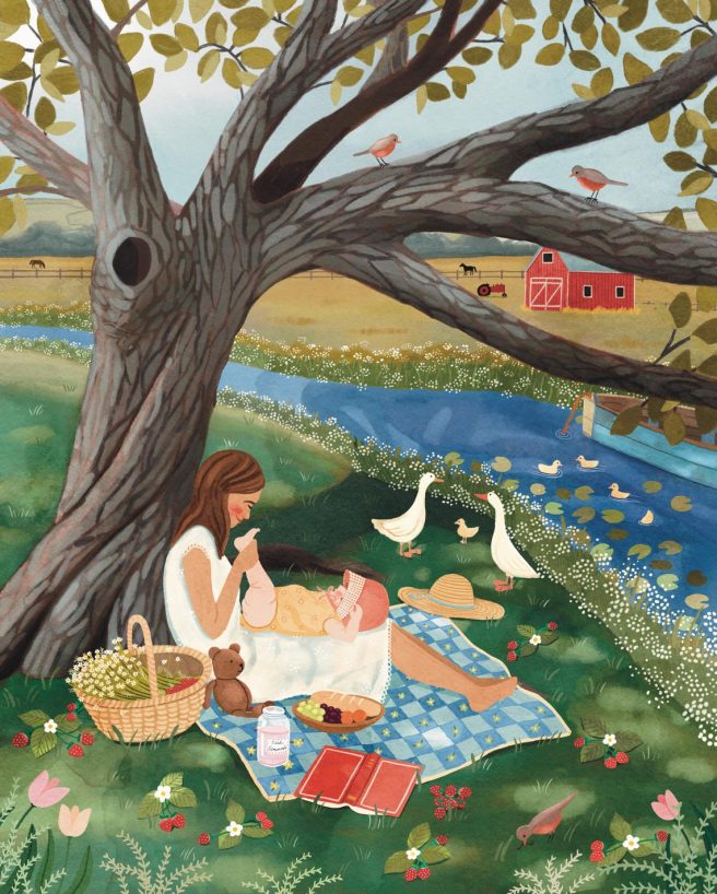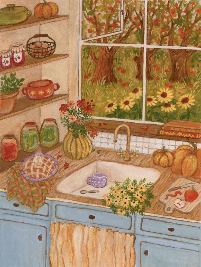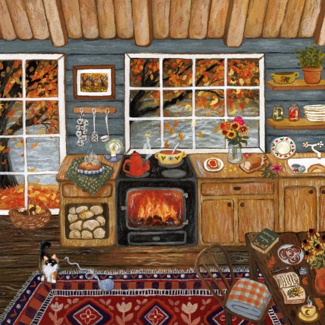 She’s inspired by slow, seasonal, simple living, hoping her art will inspire others to take time to enjoy life’s little daily miracles. I like escaping to her idyllic depictions of children playing in the snow, families baking cinnamon rolls together, the joy of a wonderful ruff ruff surprise on Christmas morning.