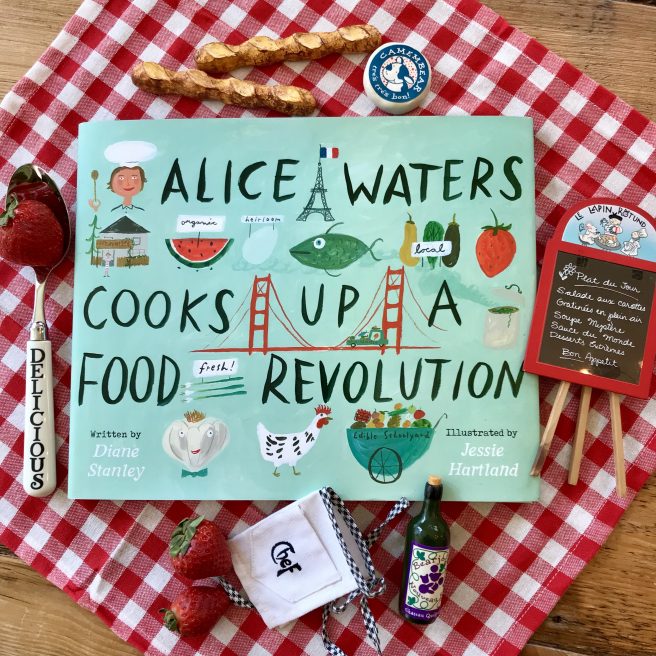 In their brand new picture book biography, Alice Waters Cooks Up a Food Revolution (Paula Wiseman Books, 2022), Diane Stanley and Jessie Hartland introduce young readers to the culinary visionary who popularized organic foods, local sustainable agriculture, and the slow food and farm-to-table movements. She is often called the Mother of American Food.