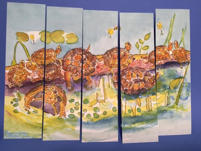 In the beautiful art category, behold these masks featuring the exquisite work of award winning painter, illustrator and teacher Carla Golembe. Been a Carla fan since she illustrated my third picture book, The Woman in the Moon (Little, Brown, 1995), and I can’t get enough of her color saturated jewel-tone pictures, which embrace spirituality, female empowerment, the wonders of nature, and stewardship of the planet Earth. Love the mystical, magical, mysterious quality of her images.