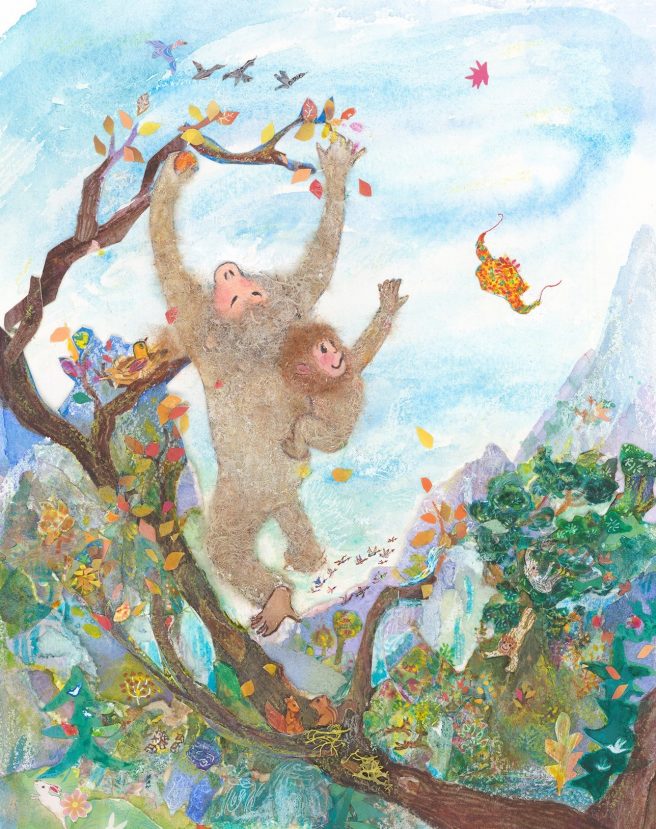 That summer, Bear comes up with an idea. What about a secret birthday ball for Oak? His friends roar and cheer in agreement. In no time at all, they create “piles and piles” of homemade invitations that are dutifully sent to everyone in Brown Bear Wood by lots of volunteers.