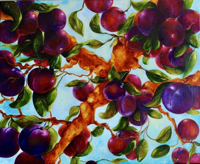 Barbara: “Plum” came from both our terrible plum crop (we planted a little orchard when my husband retired (2 apples, 2 pears, 2 plums, 2 peaches)) and from the organic plums I bought at a local farm stand (Eagle Point). So it’s a combination love poem to the fruit and also to the luscious “um” sounds I sprinkled throughout (including, or especially, summer) . . .