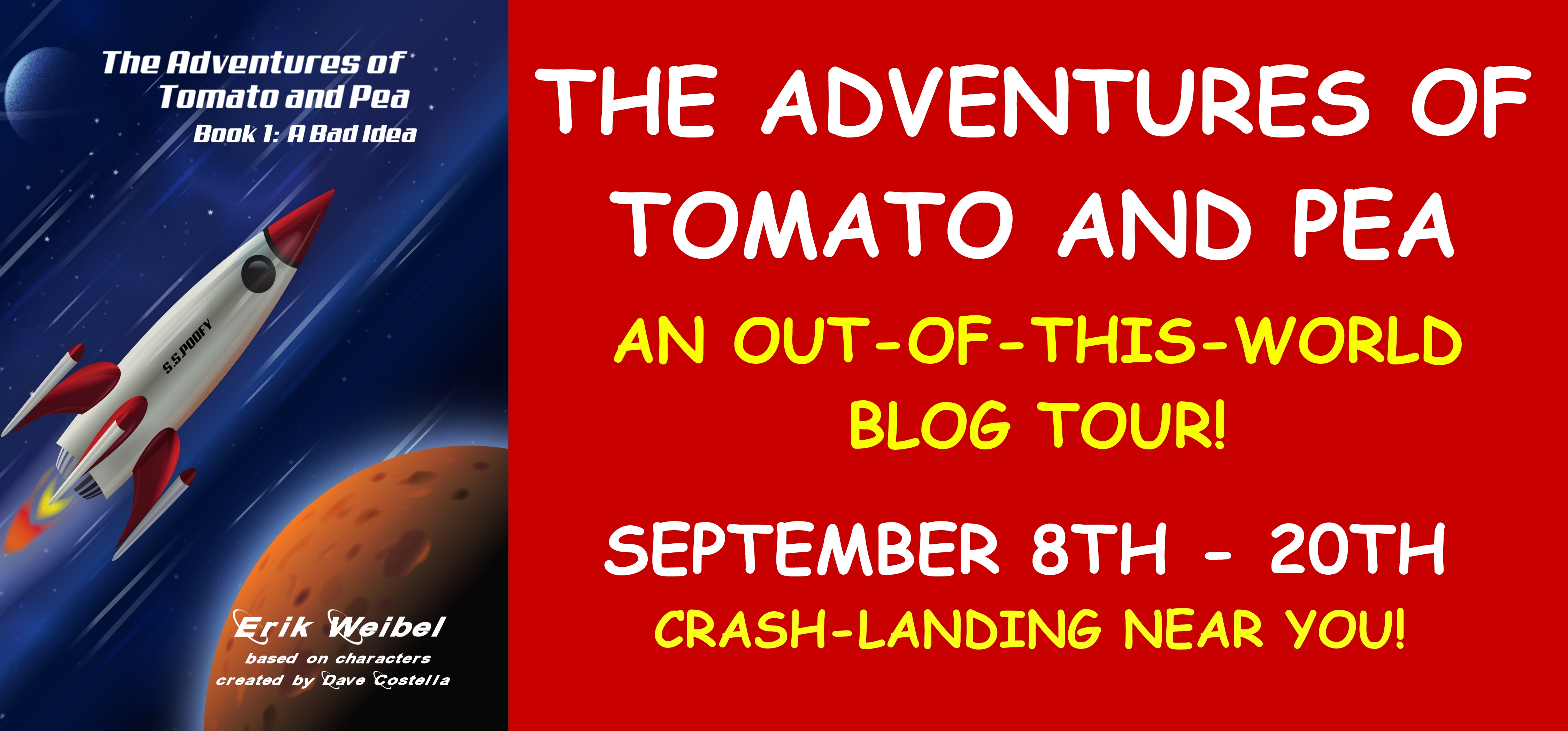 Come September 8, Erik will kick off The Official Adventures of Tomato and Pea Blog Tour at This Kid Reviews Books, the first of 15, count ’em, 15 (!) crash landings stops at various blogs in the kidlitosphere.