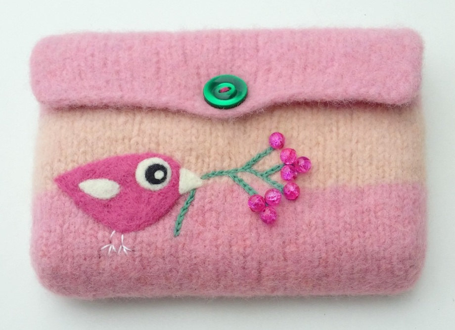 Mia was one of the first people I interviewed for my Indie Artist Spotlight series. She’s one of the nicest Etsy sellers I’ve encountered — great, personalized service and I like how she recycles vintage materials (100% Finnish wool) for her bags and pouches.