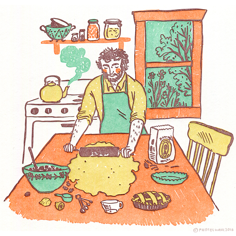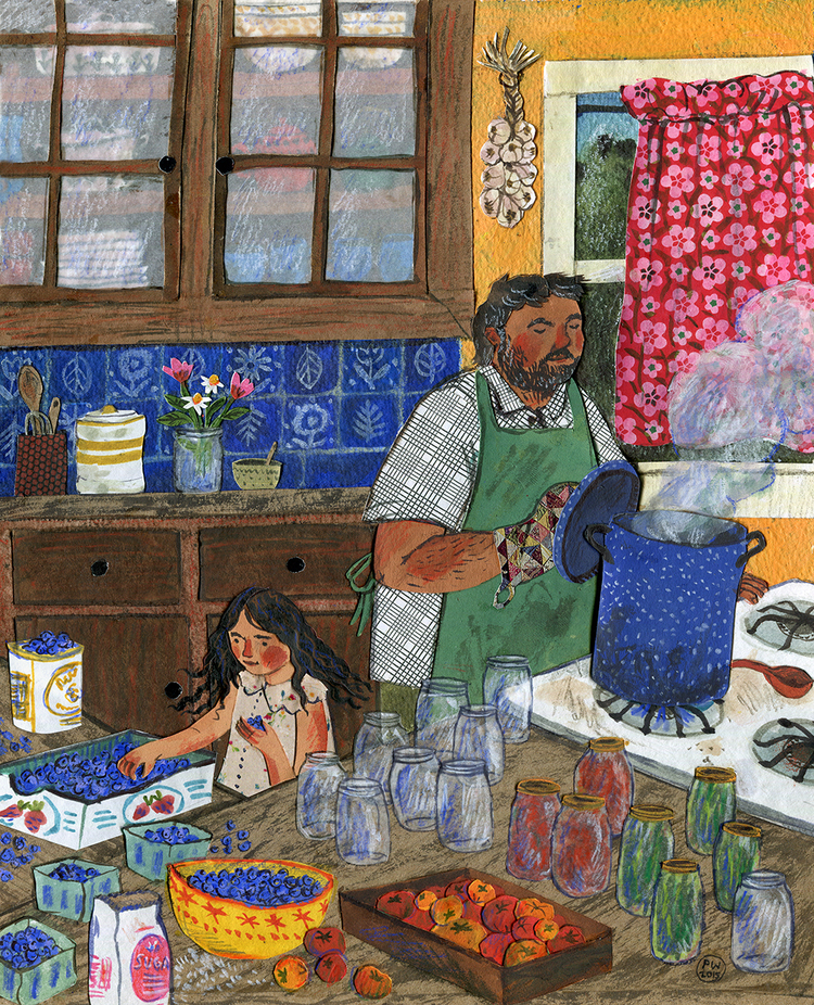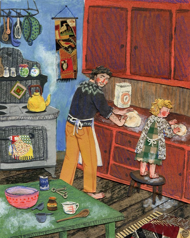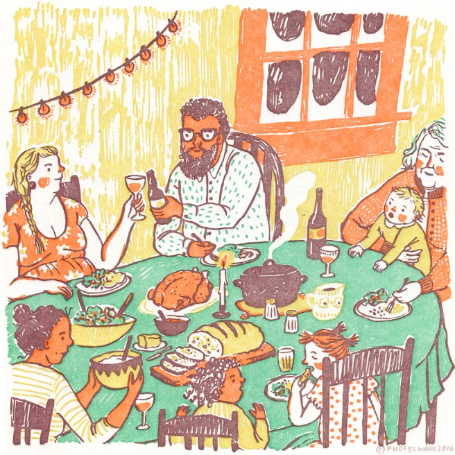 Besides her picture book illustrations, I like her 2017 Slow Food Calendar. The four color letterpress prints are gorgeous and distinctive. Can’t get enough of the intimate scenes of people working together in the kitchen or enjoying the outdoors. Though the 2017 calendar is sold out, Phoebe will be making one for 2018 — can’t wait!